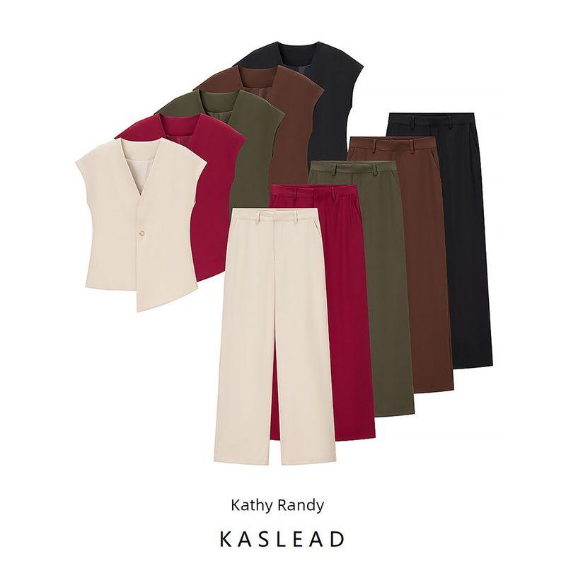 Kaslead New Women clothes Western Style Fashion Simple Irregular Vest Casual Trousers Set