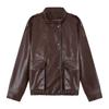 Sweet Cool Sexy Suit Loose Jacket Brown Leather Coat Women's Clothing Fall Lace Sling Dress Two-piece Set