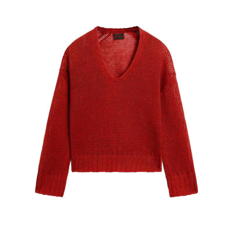MD New Fall Women's Clothing Minimalist Wind Light Linen Blend V Neck Sweater Long Sleeve Knitwear 5661575