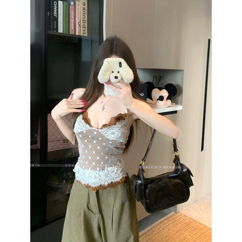 Kumikumi Pure Desire Style Double Layer Lace Stitching Polka Dot Cami Women Summer All-Match Sexy Slimming Top