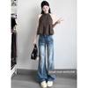 Small American Retro Best Selling Folding Washed Denim Women's Unique Super Nice Loose Slimming and Straight Pants