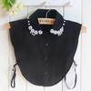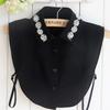 Fashion Chiffon Shirt False Collar for Women Fake Collar Lapel Blouse Women Beads Detachable Collar Lapel Button Decoration