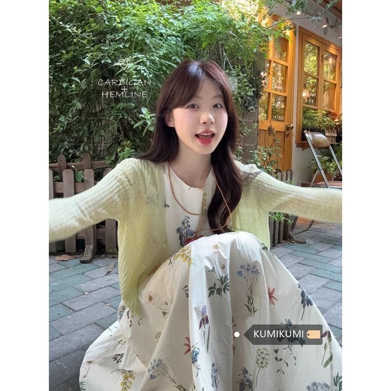 Gentle Suit Women's Small Sun Protection Knit Cardigan Tops Autumn Seaside Floral Skirt Dress Two-piece Set