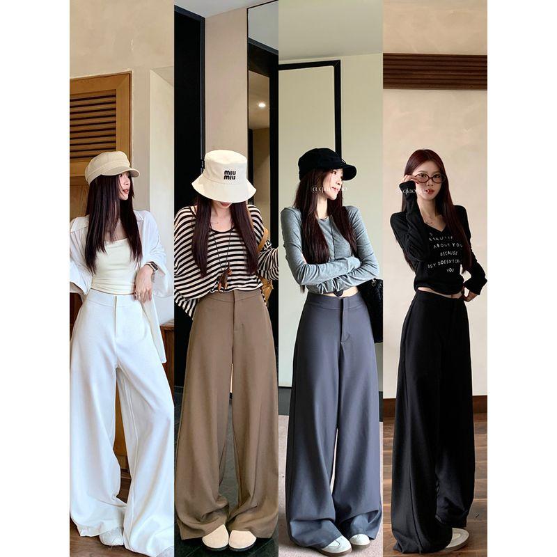 Kumikumi Pure Color High Waist Loose Casual Pants Loose Pants Women's Clothing Fall Drape All-Matching Straight Pants Mop Pants