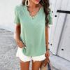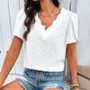 Ladies Summer Ruffles Short Sleeve V Neck Solid Color Jacquard Pullover T Shirt Top
