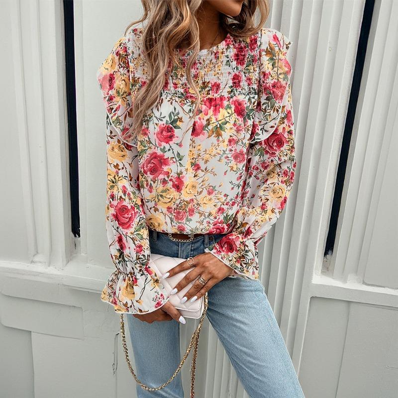 Printed Shirt Female Temperament Long-sleeved Shirt Blouse