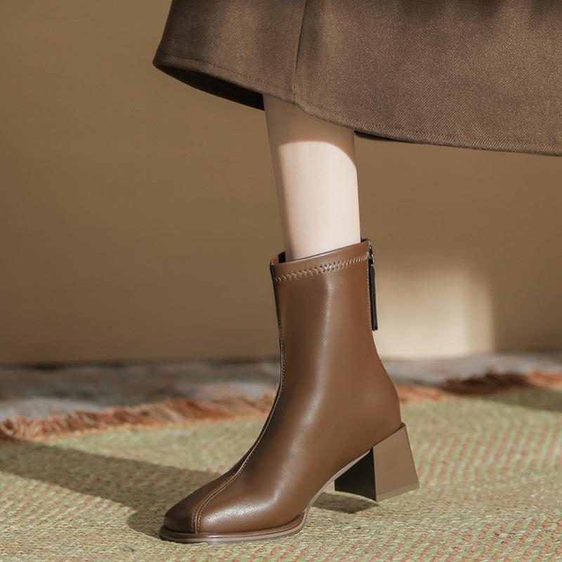 Light man home brown short boots women's 2025 new spring and autumn winter thick-soled Martin boots British style elastic thin boots