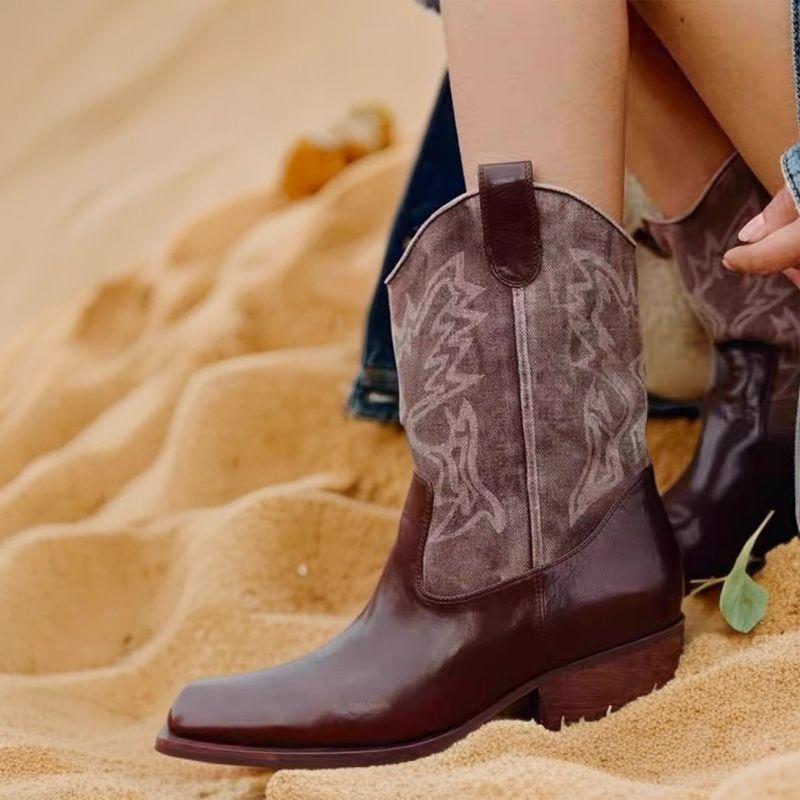 Internet celebrity embroidery western cowboy boots women's 2025 new boots travel wear desert boots northwest knight boots