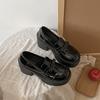 Black thick heel platform small leather shoes women's 2025 new autumn height increase versatile high heels round head loafers children