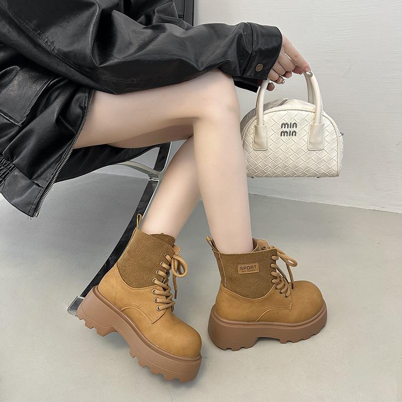 British big-headed Martin boots women's 2025 autumn new thick-soled heightening short tooling boots, thin rhubarb boots