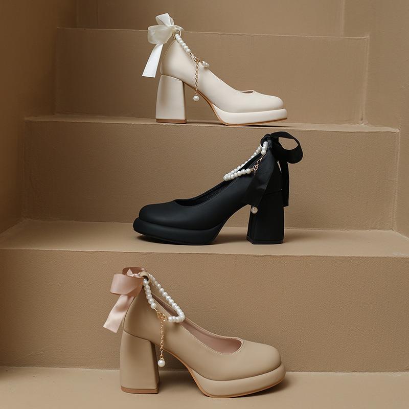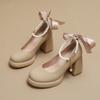 White Mary Jane shoes women's spring new temperament gentle single shoes thick heel high heel small leather shoes large size
