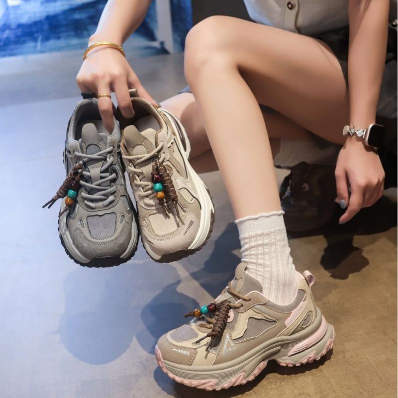 thick-soled double lace-up shoes versatile sneakers women's autumn new small slim mesh shoes