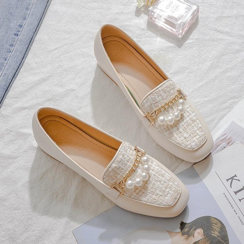 Women's shoes 2025 new one-pedal soft-soled Doudou shoes versatile with skirt thick heel not tired feet evening wind single shoes middle heel