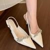 Sandals women's thin heels summer patent leather back empty single shoes pointed sexy rhinestones beautiful temperament versatile word with high heels