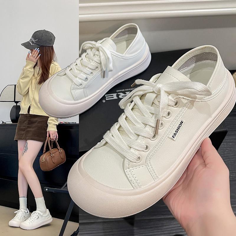 Little white shoes women's single shoes autumn minimalist doll head simple fashion lace-up flat casual shoes women's board shoes