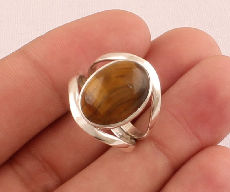 Solid 925 Sterling Silver Tiger Eye Oval Gemstone Handmade Designer Bohemian Ring Unisex Ring