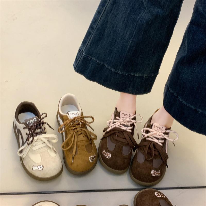 Retro double lace-up niche trendy flat-bottomed comfortable casual shoes autumn new commuting versatile