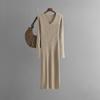 Autumn and winter v-neck knitted dress women's outerwear straight tube thin long-sleeved pit strip split bottom knee sweater skirt