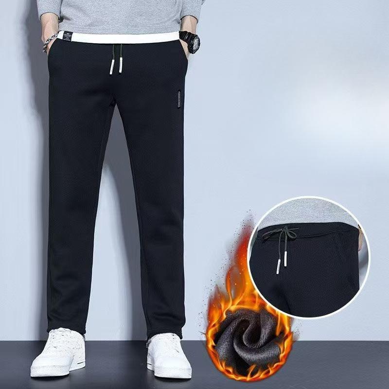 Men's Korean Style Plus Size Fashionable Straight Leg Casual Fleece Lined Pants