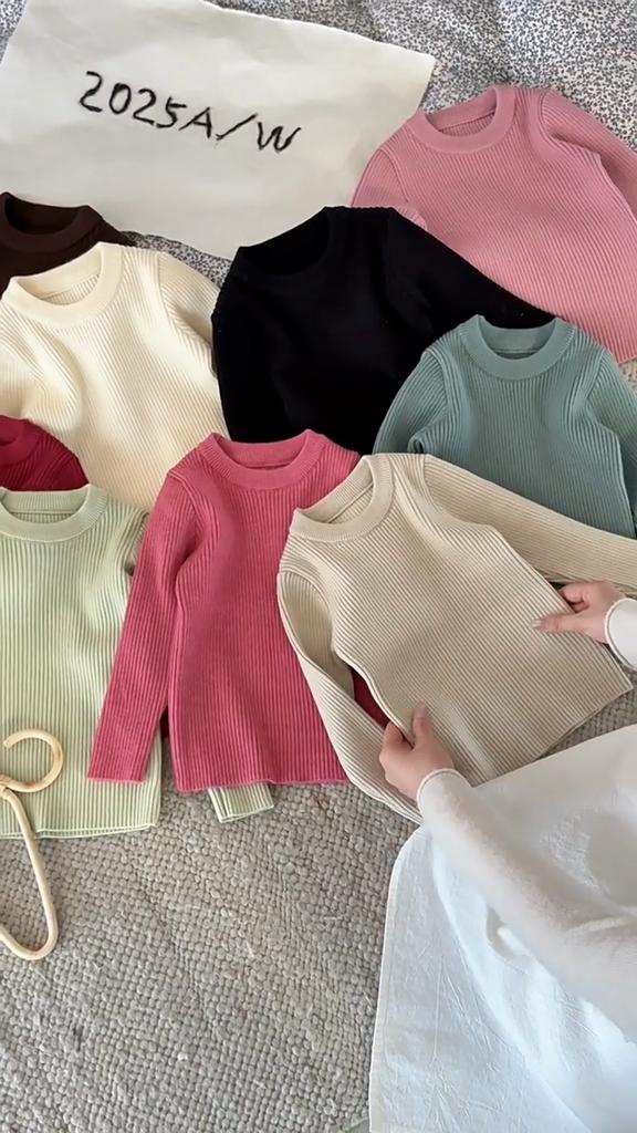 Klučičí a dívčí pletené svetry, univerzální strečové svetry pro dětské oblečení s dlouhým rukávem, jednobarevné, žebrované dětské svetry