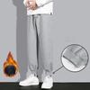 Men's Autumn Winter Plus Size Korean Style Loose Cuffed Sweatpants Straight Leg Casual Running Fleece Lined Knit Long Pants