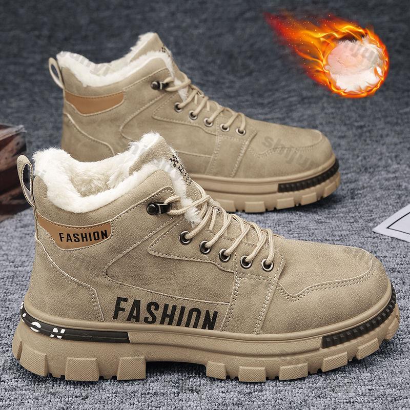 Pánské sněhule Zimní protiskluzové plyšové vnitřní teplé mrazuvzdorné sněhule Vysoké platformové šněrovací outdoorové sportovní pracovní boty
