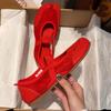 Sheepskin version~ Korean version of niche leather one-word with split-toe single shoes women's retro color matching suede breathable Mary Jane shoes