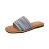 Korean version of square head matte color matching woven one-word slippers retro casual versatile skirt flat bottom cool slippers women