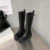 Round head small gold buckle thick-soled versatile side zipper knight boots 2025 new temperament thin oblique thick heel boots
