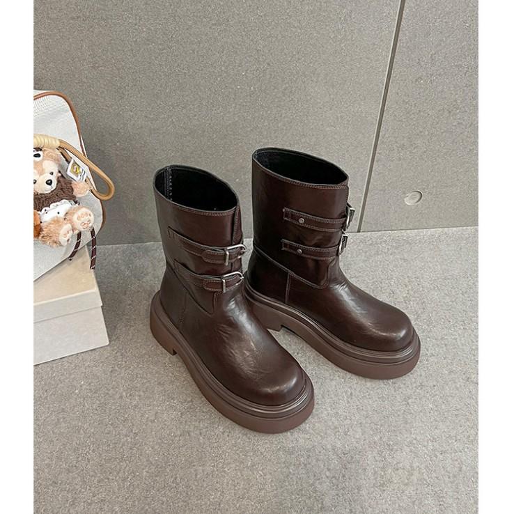 Wu Xuanyi has the same round head versatile platform Martin boots for women 2025 autumn and winter British style thick heel belt buckle short boots f