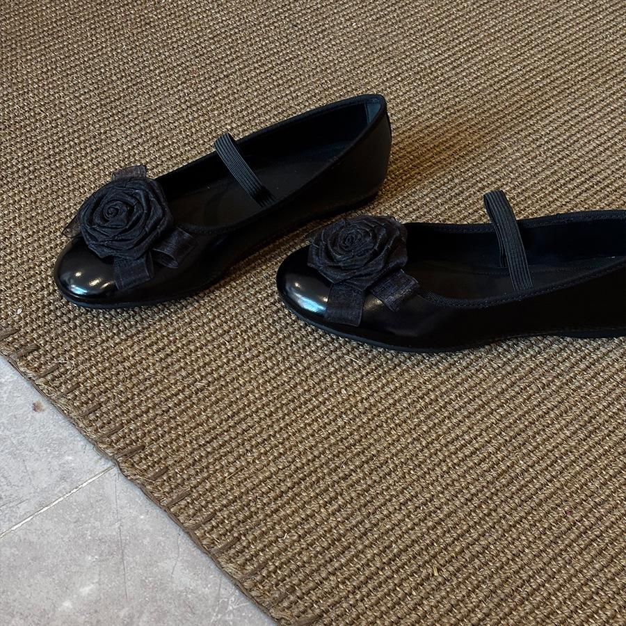 Sheepskin version~ retro national style flower Mary Jane shoes women's summer gentle shallow mouth word belt with skirt flat-soled single shoes