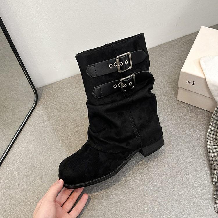 Retro round head versatile belt buckle thick heel trousers boots 2025 new Spice Girl temperament thin thick-soled Martin boots women