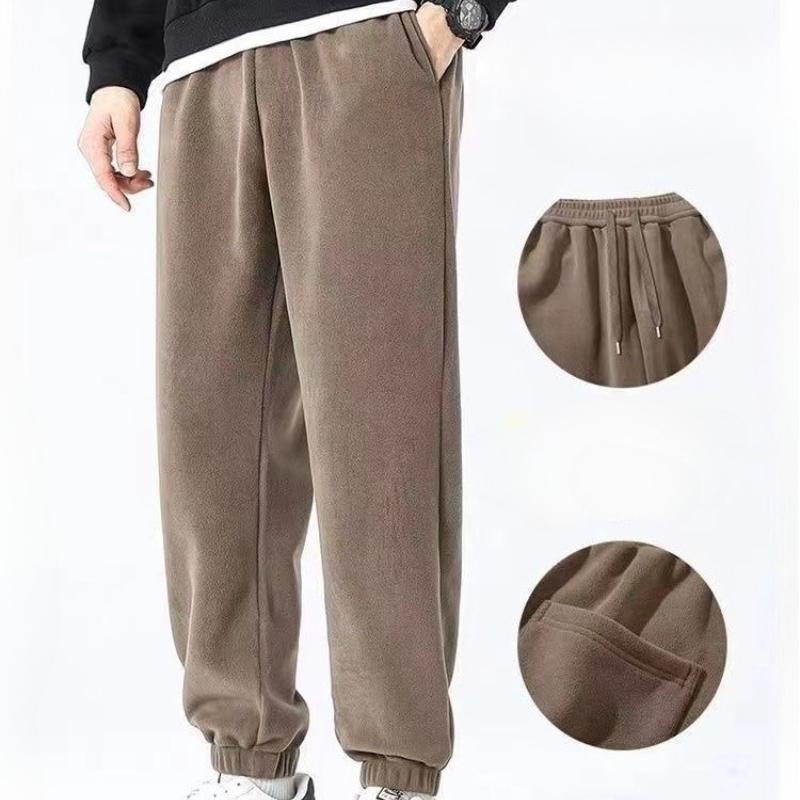 Pánské podzimní zimní fleecem podšité zateplené tepláky oboustranné fleecové kalhoty teplé jednobarevné ležérní s manžetami sportovní kalhoty