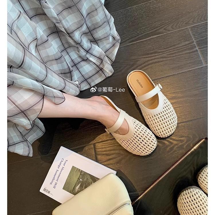 Grape mother, the same style, big round head, versatile, hollow weaving, one-character belt, flat bottom, half drag, lazy person, one pedal, bag head,
