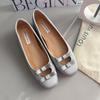 Jehněčí kůže malé zvýšení vnitřní výšky dámské lodičky s dutou mašlí ve francouzském stylu stříbrné baleríny