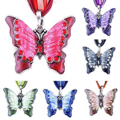 Retro vícebarevný motýl náhrdelník - řetízek z legované slitiny v evropském a americkém stylu pro ženy
