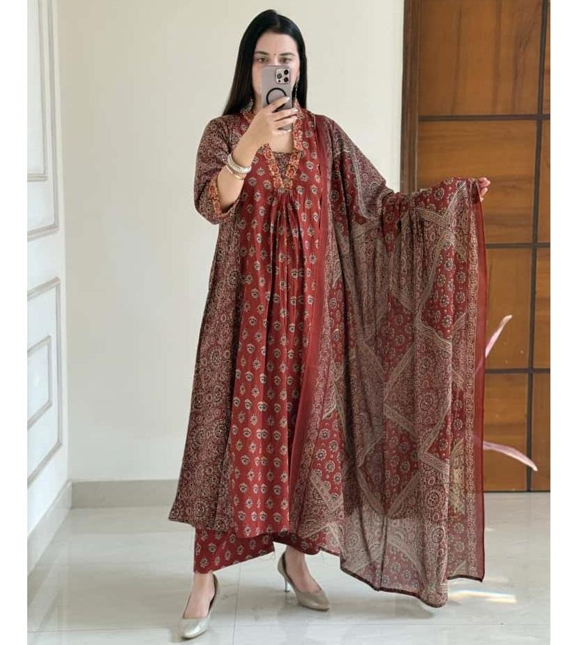 Anarkali Bavlna Tištěný Salwar Kameez Indický Bollywood Párty Oblečení Top Tunika Kurti Set