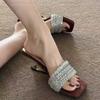 Beautiful one-word sandals for women to wear in summer, new rhinestone temperament with skirt, high-heeled cool slippers
