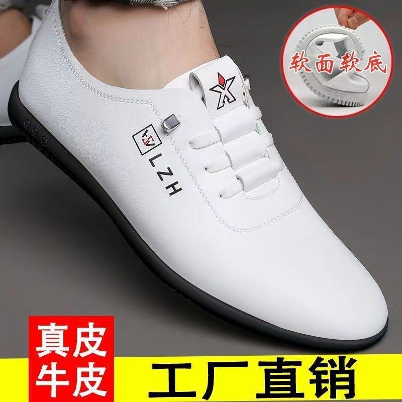 Genuine leather cowhide men's leather shoes summer new breathable deodorant strap-free white casual shoes soft sole soft surface leather shoes
