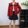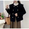 Spring and Autumn New Small Fresh Jacket Women's Short Fashion Double-breasted Doll Collar Versatile Fringed Knitted Cardigan Top