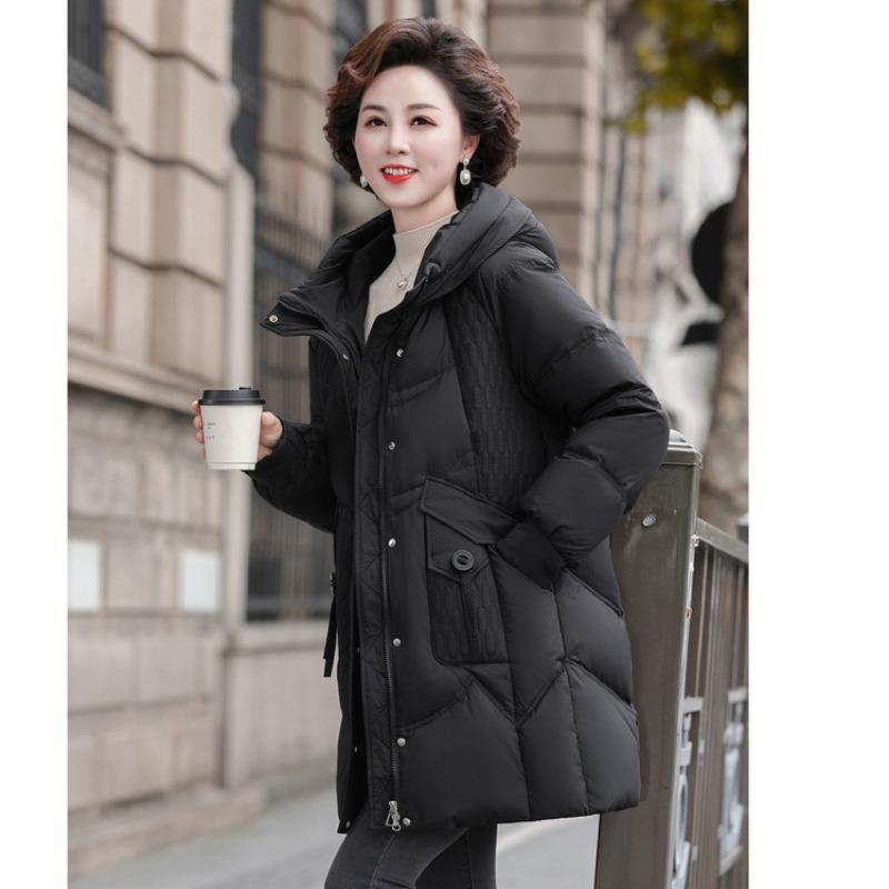Mom's winter hooded down jacket women's age 0 medium and old women's clothing winter medium and long large size coat