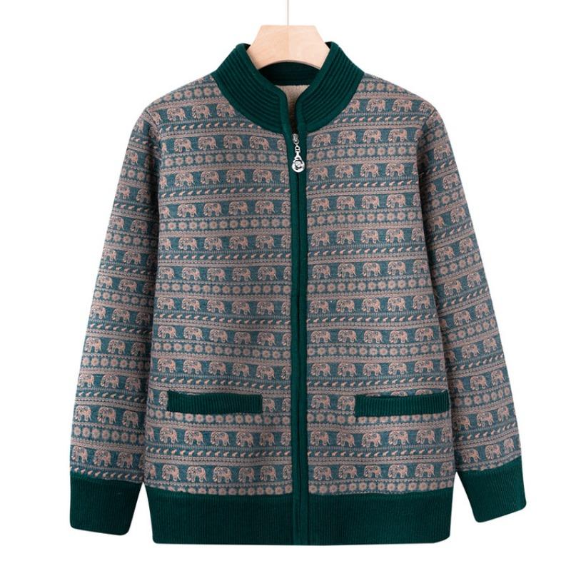 Chinese women's zipper cardigan casual warm jacket middle-aged and elderly mothers' autumn and winter clothes new velvet top