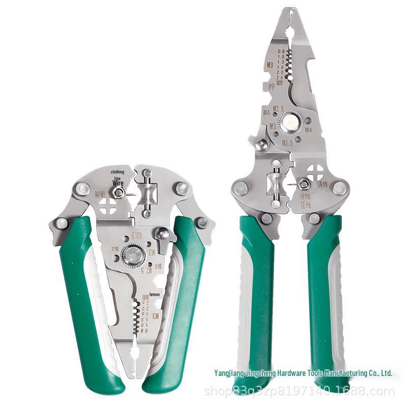 Nerezové multifunkční kleště na odizolování drátů: Skládací, řezací, odizolovací, krimpovací a krouticí nástroj pro elektrikáře
