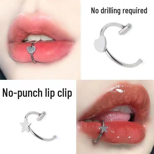 Nerezový kroužek na rty bez piercingu s designy hvězdy, kříže a srdce