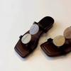 Fashion Hot - Selling Summer Shell - Accent Slides | Stylish Square - Toe Flat Sandals for Casual Looks