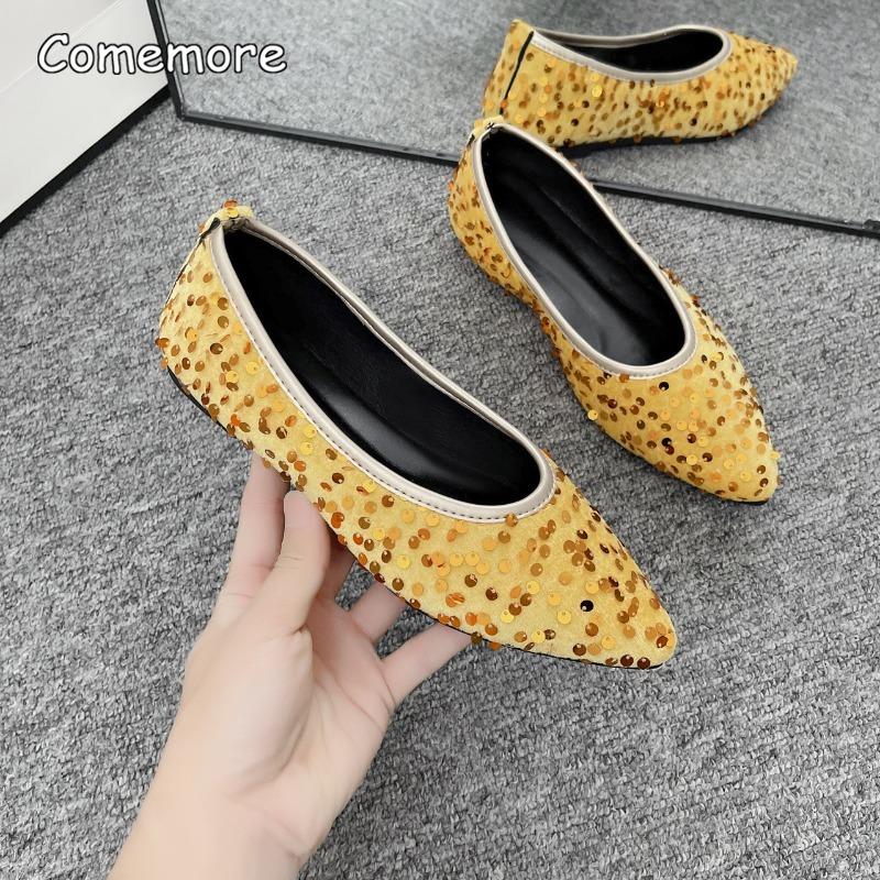 Fashion Shiny Sequins Women's Casual Flat Bottom Shoes Pointed Toe Slip-On Large Size36 43 Summer Loafers Soft Sole Women Shoes Fashion