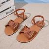 Fashion Rivets Women's Flat Sandals Large Brown Butterfly Beach Shoes New 2025 Rubber Sole Open Toe