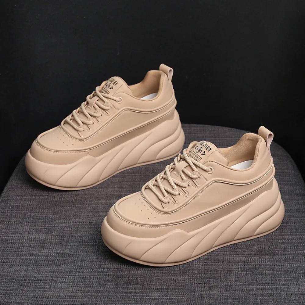 Fashion Thick Soled Women's Shoes 2025 Spring Autumn New Versatile Casual Sports Shoes Genuine Leather Platform Sneakers Shoes Women