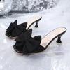 Fashion Square Headed Slippers for Women's 2025 New Summer High Heels Thick Heels Cool Slippers Sweet Bow Fashionable Sandals Women