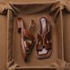 Fashion Sandals Women's New Large Thick Heel One-word Buckle Sandals Summer Flat-soled Soft-soled Leather French Roman Sandal Womens